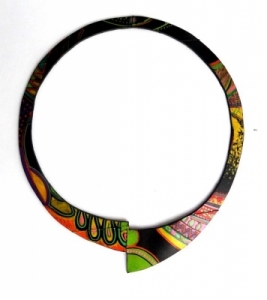 Le collier s’enfile par la tête en profitant de l’élasticité de la matière ( aucune pièce métallique, aucune attache)